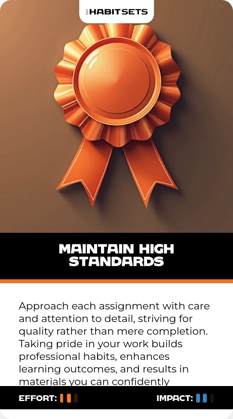 Approach each assignment with care and attention to detail, striving for quality rather than mere completion. Taking pride in your work builds professional habits, enhances learning outcomes, and results in materials you can confidently reference in the future.