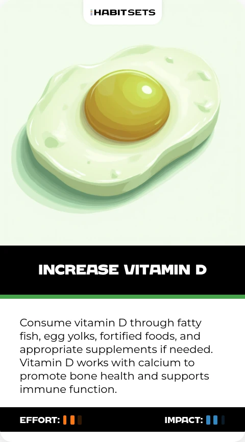 Ensure adequate vitamin D intake through fatty fish, fortified foods, or supplements if needed. Vitamin D works with calcium to promote bone health and plays important roles in immune function and mood regulation.