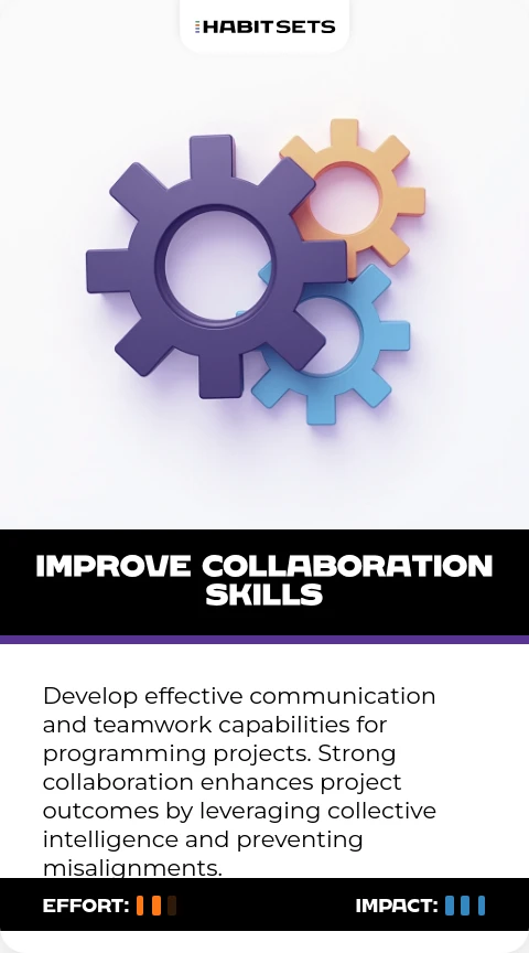 Develop effective communication and teamwork capabilities for programming projects. Strong collaboration enhances project outcomes by leveraging collective intelligence and preventing misalignments.
