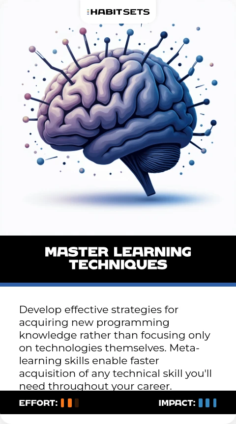 Develop effective strategies for acquiring new programming knowledge rather than focusing only on technologies themselves. Meta-learning skills enable faster acquisition of any technical skill you'll need throughout your career.