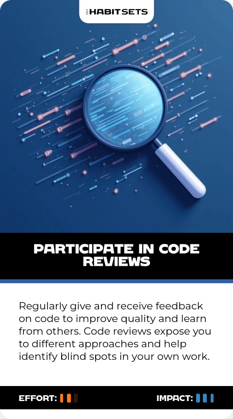 Regularly give and receive feedback on code to improve quality and learn from others. Code reviews expose you to different approaches and help identify blind spots in your own work.