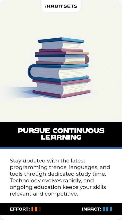 Stay updated with the latest programming trends, languages, and tools through dedicated study time. Technology evolves rapidly, and ongoing education keeps your skills relevant and competitive.