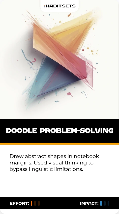 Drew abstract shapes in notebook margins. Used visual thinking to bypass linguistic limitations.