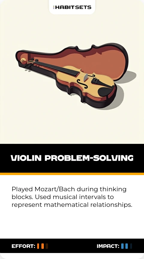 Einstein told interviewers 'Music helps physics emerge,' using violin practice to access right-brain spatial reasoning. Kept Guarneri violin within reach during working hours.