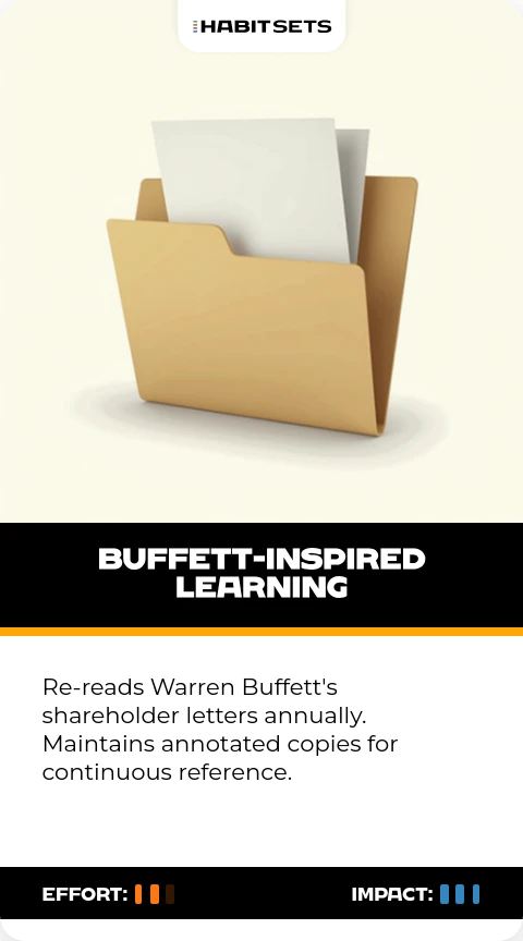 Re-reads Warren Buffett's shareholder letters annually. Maintains annotated copies for continuous reference.