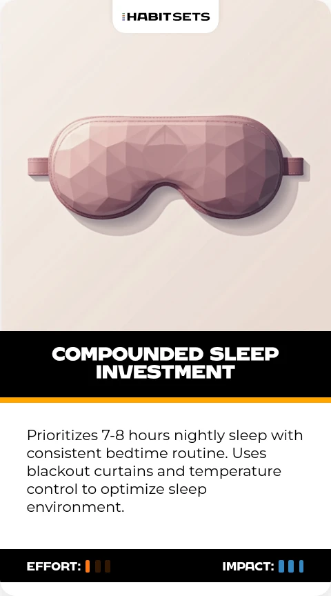 Prioritizes 7-8 hours nightly sleep with consistent bedtime routine. Uses blackout curtains and temperature control to optimize sleep environment.