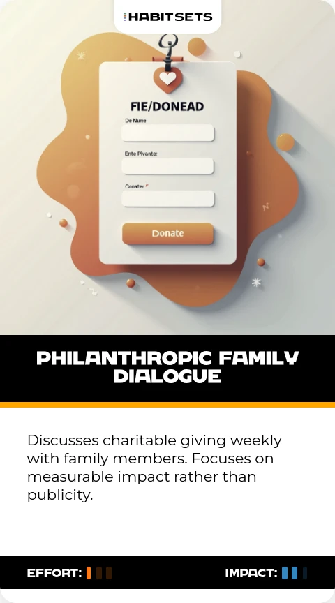 Discusses charitable giving weekly with family members. Focuses on measurable impact rather than publicity.