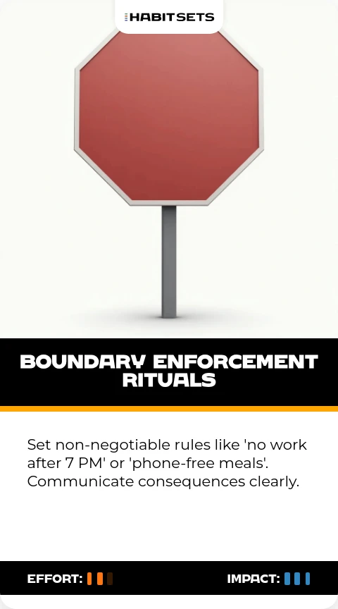 Set non-negotiable rules like 'no work after 7 PM' or 'phone-free meals'. Communicate consequences clearly.