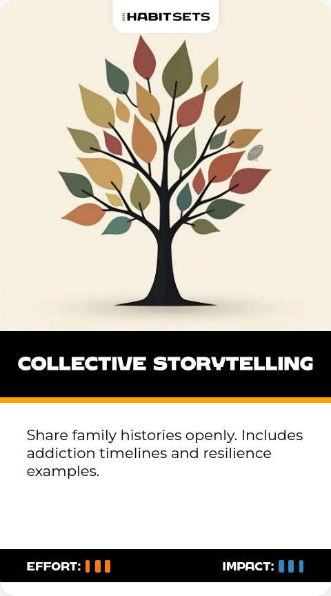 Share family histories openly. Includes addiction timelines and resilience examples.