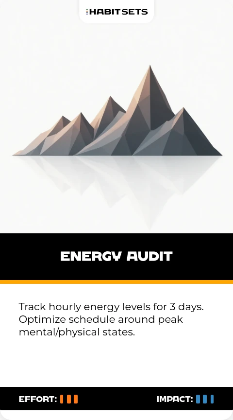 Track hourly energy levels for 3 days. Optimize schedule around peak mental/physical states.