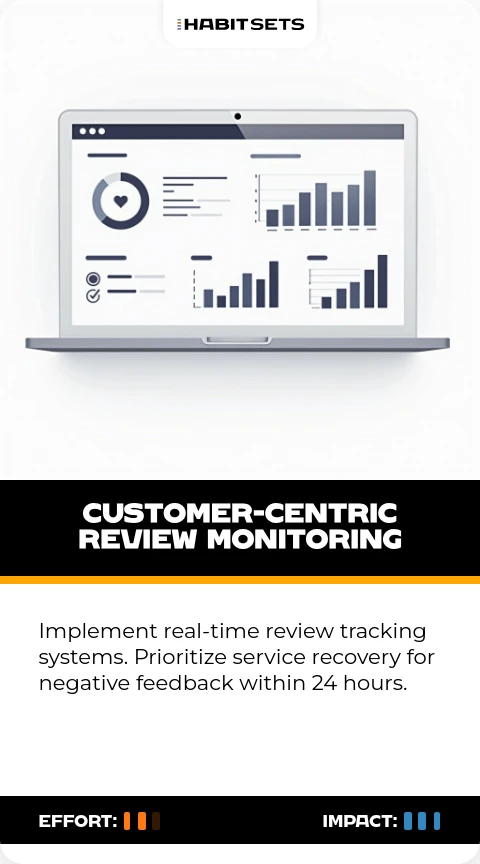 Implement real-time review tracking systems. Prioritize service recovery for negative feedback within 24 hours.