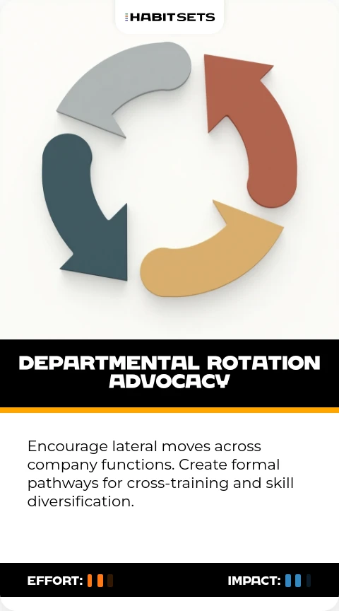 Encourage lateral moves across company functions. Create formal pathways for cross-training and skill diversification.