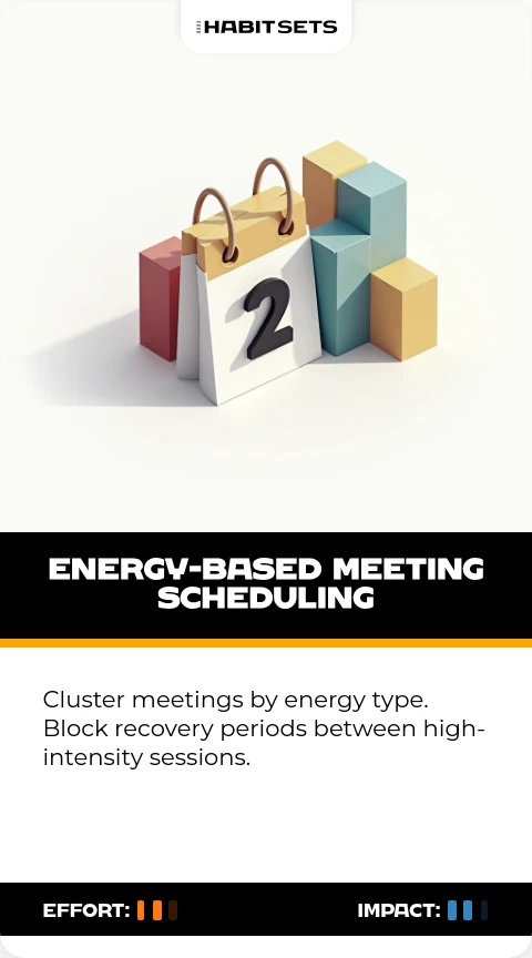Cluster meetings by energy type. Block recovery periods between high-intensity sessions.