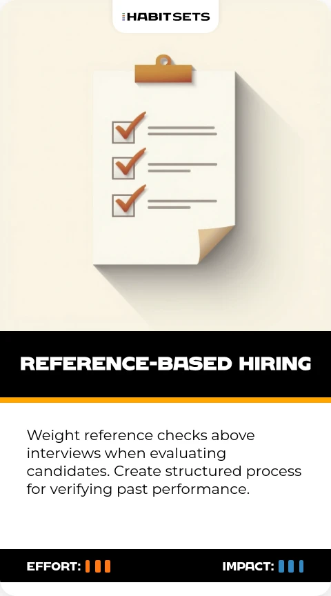 Weight reference checks above interviews when evaluating candidates. Create structured process for verifying past performance.