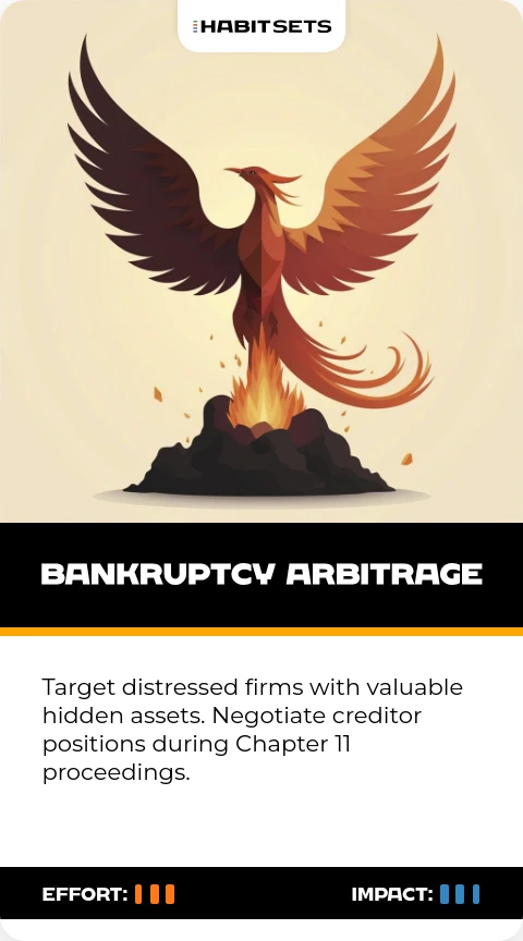 Target distressed firms with valuable hidden assets. Negotiate creditor positions during Chapter 11 proceedings.