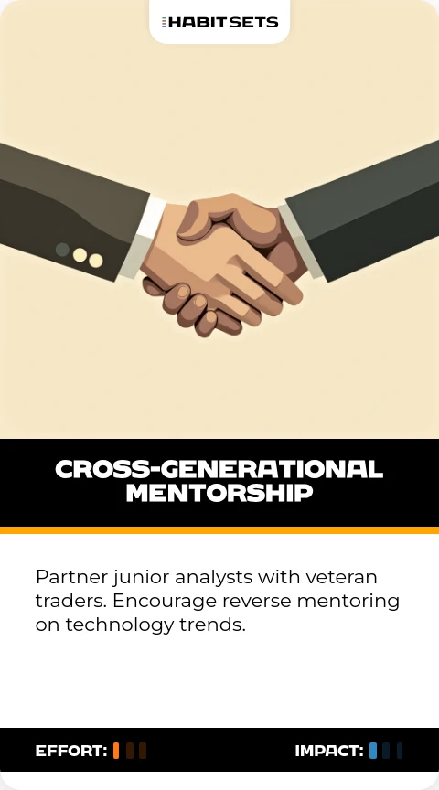 Partner junior analysts with veteran traders. Encourage reverse mentoring on technology trends.