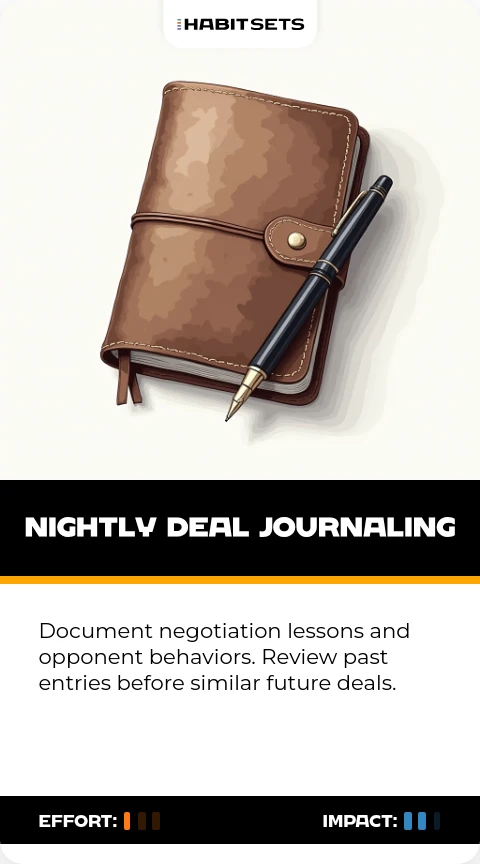 Document negotiation lessons and opponent behaviors. Review past entries before similar future deals.