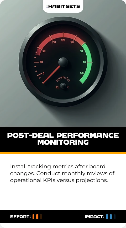 Install tracking metrics after board changes. Conduct monthly reviews of operational KPIs versus projections.