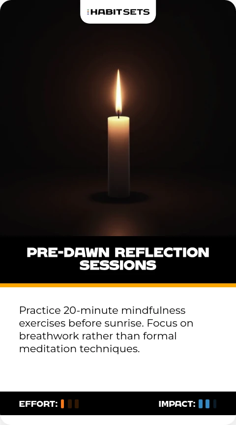 Practice 20-minute mindfulness exercises before sunrise. Focus on breathwork rather than formal meditation techniques.