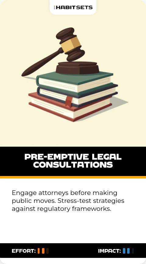 Engage attorneys before making public moves. Stress-test strategies against regulatory frameworks.