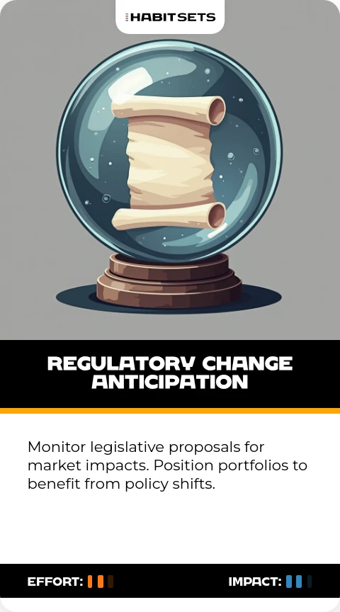 Monitor legislative proposals for market impacts. Position portfolios to benefit from policy shifts.