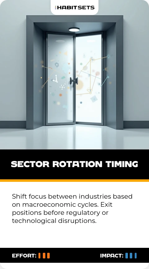 Shift focus between industries based on macroeconomic cycles. Exit positions before regulatory or technological disruptions.