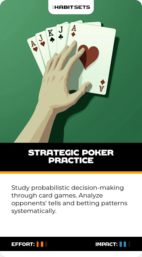 Study probabilistic decision-making through card games. Analyze opponents' tells and betting patterns systematically.