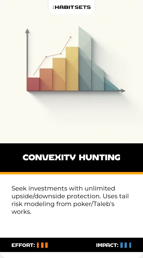 Seek investments with unlimited upside/downside protection. Uses tail risk modeling from poker/Taleb's works.