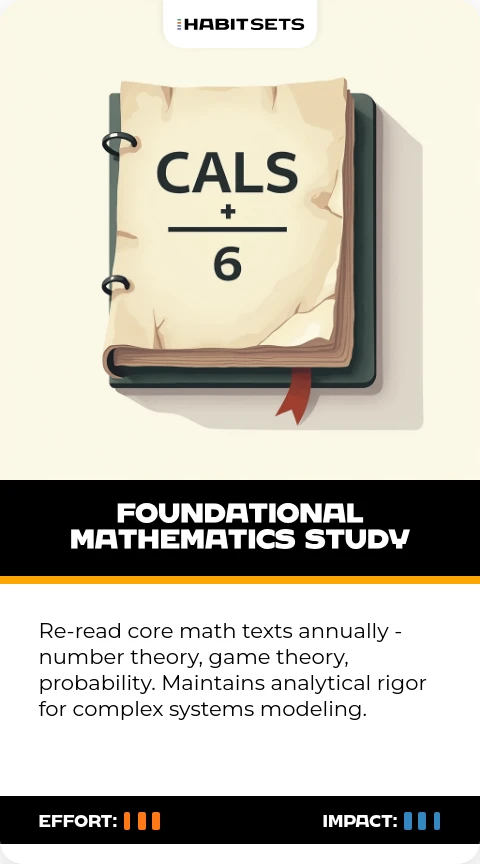 Re-read core math texts annually - number theory, game theory, probability. Maintains analytical rigor for complex systems modeling.