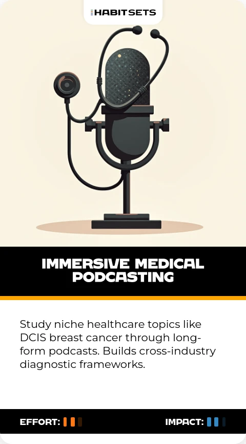 Study niche healthcare topics like DCIS breast cancer through long-form podcasts. Builds cross-industry diagnostic frameworks.