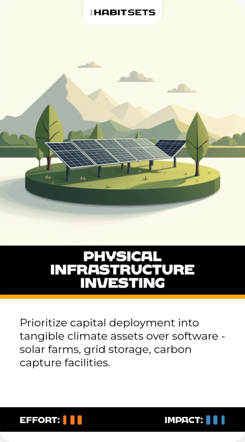 Prioritize capital deployment into tangible climate assets over software - solar farms, grid storage, carbon capture facilities.