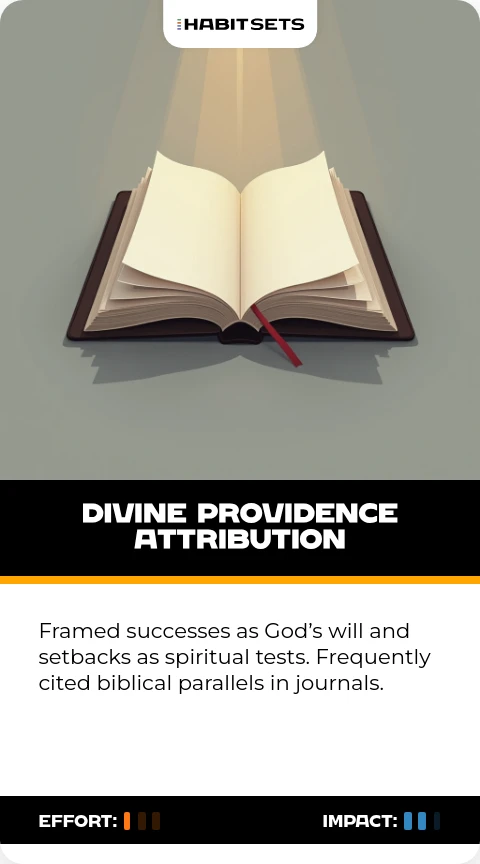Framed successes as God’s will and setbacks as spiritual tests. Frequently cited biblical parallels in journals.
