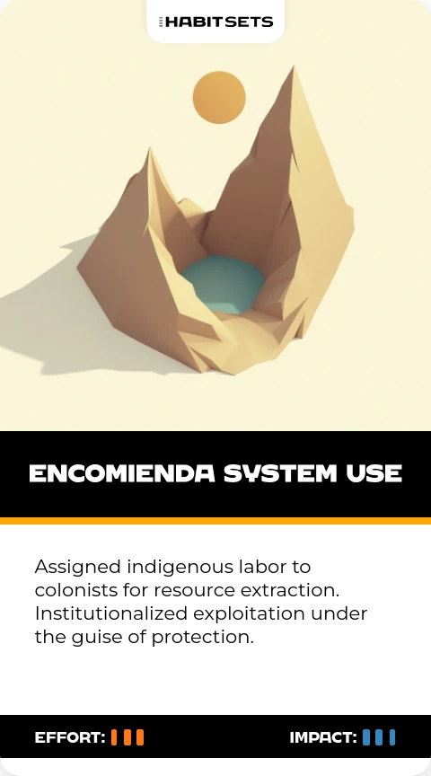 Assigned indigenous labor to colonists for resource extraction. Institutionalized exploitation under the guise of protection.