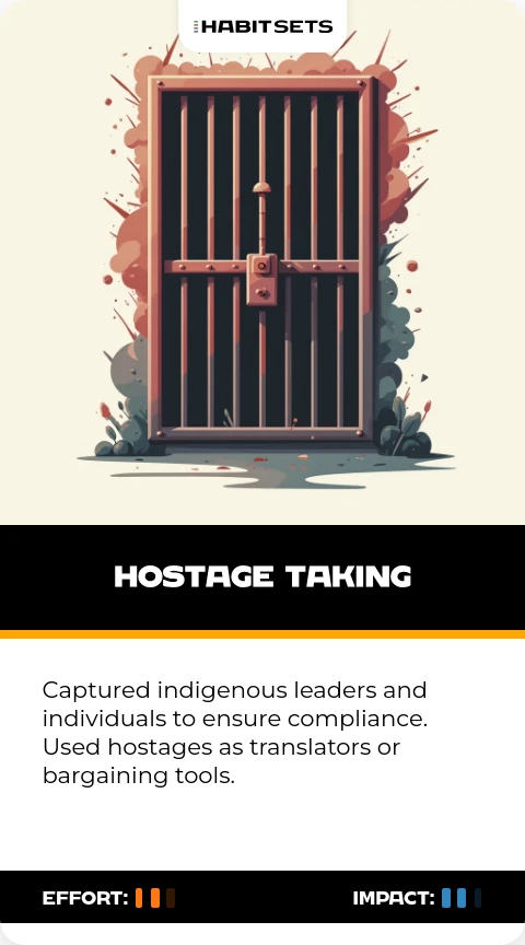 Captured indigenous leaders and individuals to ensure compliance. Used hostages as translators or bargaining tools.