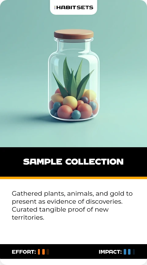 Gathered plants, animals, and gold to present as evidence of discoveries. Curated tangible proof of new territories.