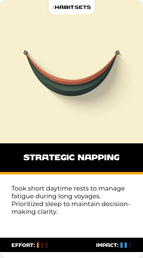 Columbus navigated physically demanding journeys; napping helped him sustain energy for leadership and crisis management.