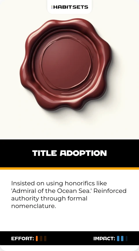 Insisted on using honorifics like 'Admiral of the Ocean Sea.' Reinforced authority through formal nomenclature.