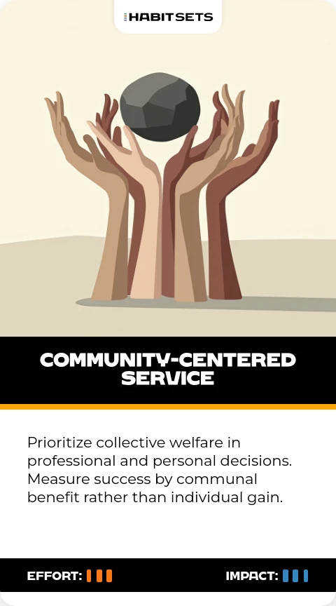 Prioritize collective welfare in professional and personal decisions. Measure success by communal benefit rather than individual gain.