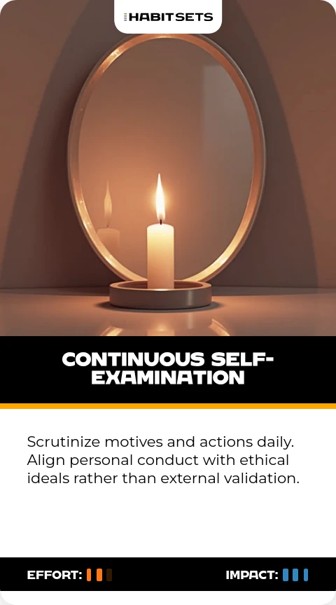 Scrutinize motives and actions daily. Align personal conduct with ethical ideals rather than external validation.