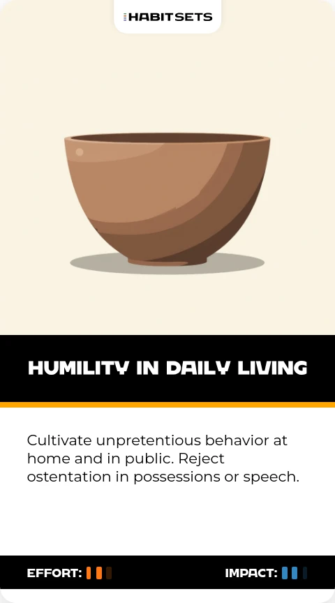 Cultivate unpretentious behavior at home and in public. Reject ostentation in possessions or speech.