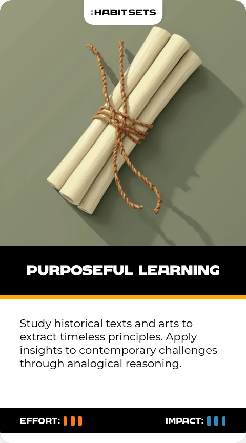 Study historical texts and arts to extract timeless principles. Apply insights to contemporary challenges through analogical reasoning.