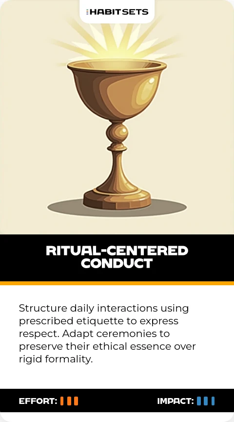 - Ritual and Tradition with Purpose: Engage in rituals and traditions with intention, focusing on their ethical essence rather than rigid formality to maintain social order and connect with heritage.