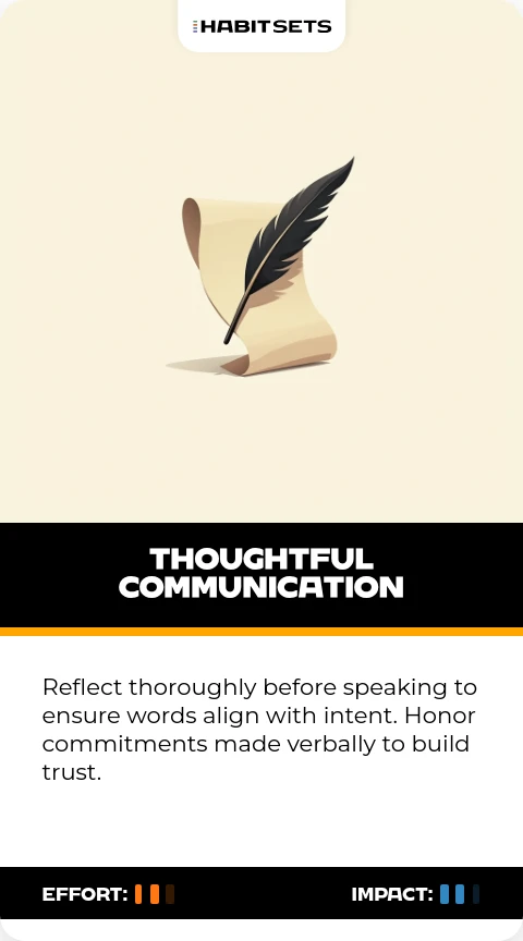 Reflect thoroughly before speaking to ensure words align with intent. Honor commitments made verbally to build trust.