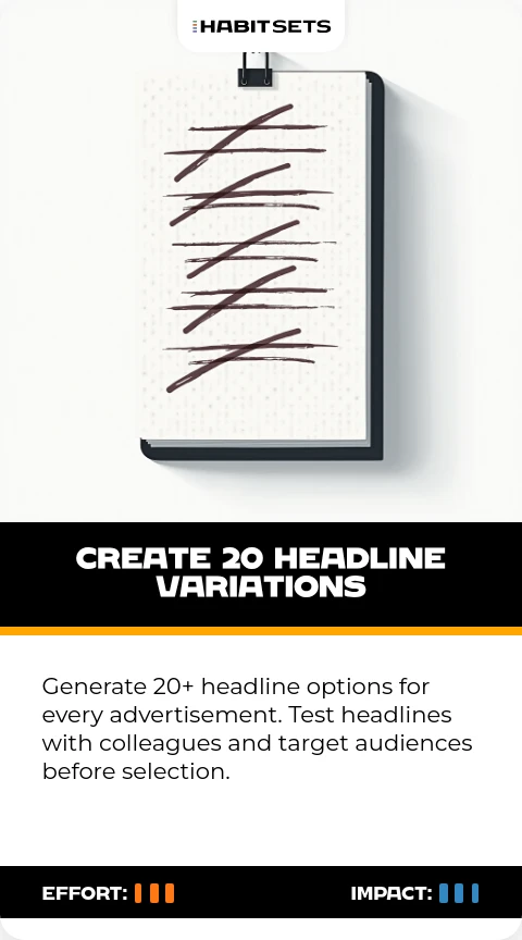 Generate 20+ headline options for every advertisement. Test headlines with colleagues and target audiences before selection.