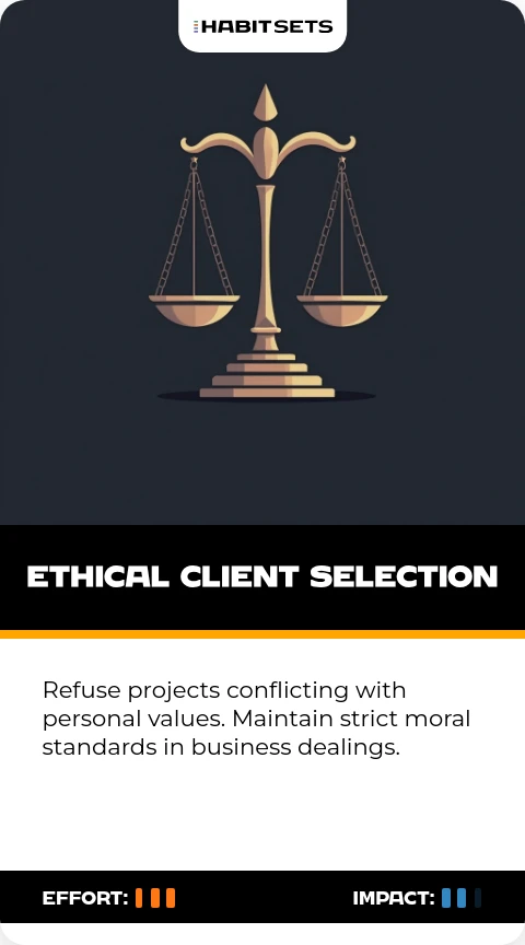 Refuse projects conflicting with personal values. Maintain strict moral standards in business dealings.