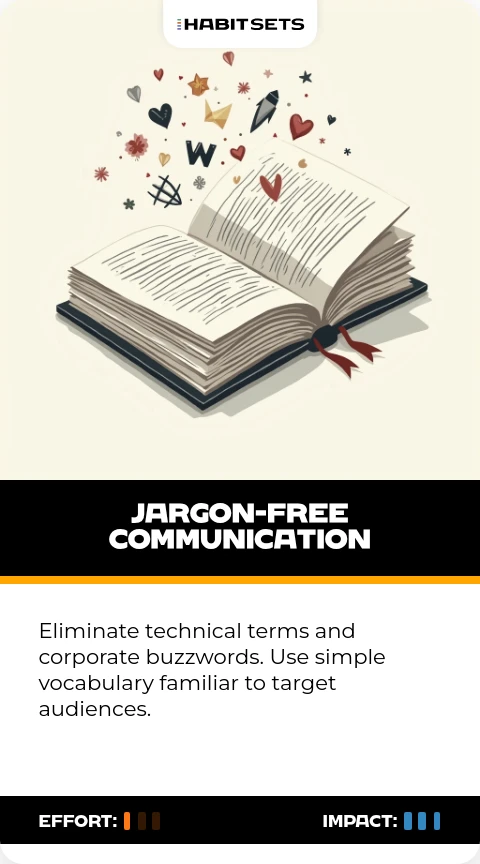 Eliminate technical terms and corporate buzzwords. Use simple vocabulary familiar to target audiences.