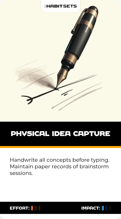Handwrite all concepts before typing. Maintain paper records of brainstorm sessions.