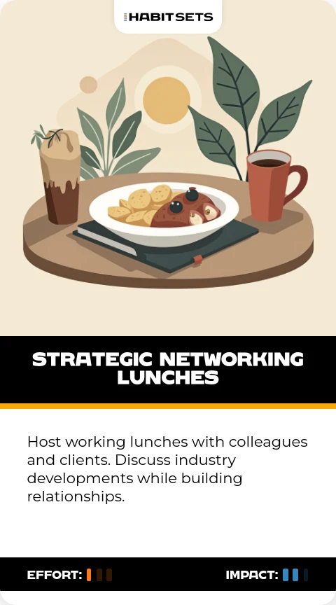 Host working lunches with colleagues and clients. Discuss industry developments while building relationships.