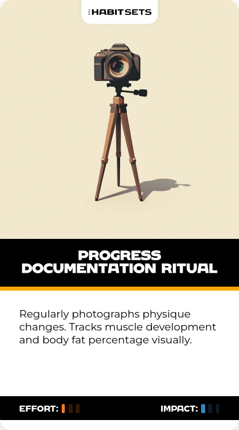 Regularly photographs physique changes. Tracks muscle development and body fat percentage visually.