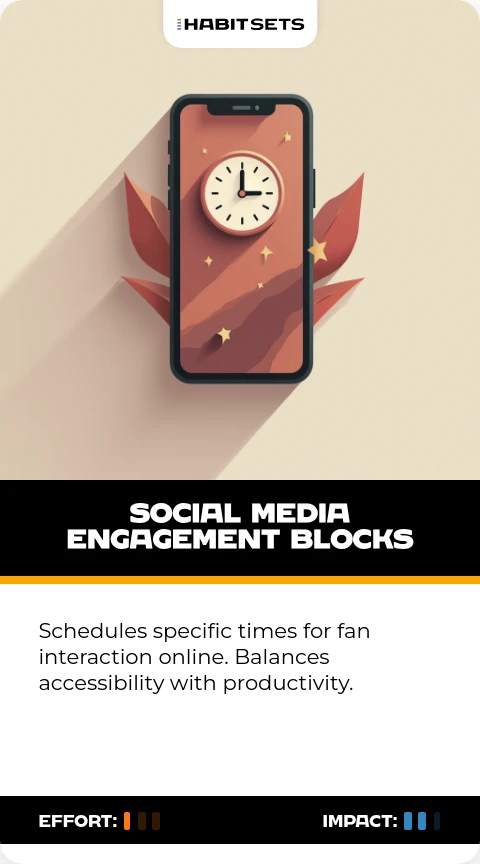 Schedules specific times for fan interaction online. Balances accessibility with productivity.